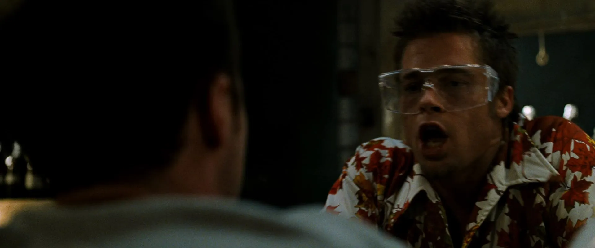 Cast: Edward Norton as The Narrator, Brad Pitt as Tyler Durden, Helena Bonham Carter as Marla Singer, Meat Loaf as Robert "Bob" Paulson, Jared Leto as Angel Face, Zach Grenier as Richard Chesler, Holt McCallany as The Mechanic, Eion Bailey as Ricky, Richmond Arquette as Intern, David Andrews as Thomas, Christina Cabot as Group Leader, Tim DeZarn as Inspector Bird, Ezra Buzzington as Inspector Dent, Bob Stephenson as Airport Security Officer, David Lee Smith as Walter, Carl Ciarfalio as Lou's Body Guard, Stuart Blumberg as Car Salesman, Mark Fite as Second Man at Auto Shop, Matt Winston as Seminary Student, Lauren Sánchez as Channel 4 Reporter, Thom Gossom Jr. as Detective Stern, Markus Redmond as Detective Kevin, Van Quattro as Detective Andrew, Michael Girardin as Detective Walker, David Jean Thomas as Policeman, Paul Carafotes as Salvator - Winking Bartender, Christopher John Fields as Proprietor of Dry Cleaners, Michael Shamus Wiles as Bartender in Halo, George Maguire as Group Leader, Eugenie Bondurant as Weeping Woman, Sydney 'Big Dawg' Colston as Speaker, Rachel Singer as Chloe, Christie Cronenweth as Airline Attendant, Dierdre Downing-Jackson as Businesswoman on Plane, Charlie Dell as Doorman, Rob Lanza as Man in Suit, Joel Bissonnette as Food Court Maître D', Evan Mirand as Steph, Robby Robinson as Next Month's Opponent, Lou Beatty Jr. as Cop at Marla's Building, Valerie Bickford as Susan - Comsetics Buyer, Peter Iacangelo as Lou, Todd Peirce as First Man at Auto Shop, Joon Kim as Raymond K. Hessel, Bennie Moore as Bus Driver with Broken Nose, Pat McNamara as Commissioner Jacobs, Tyrone R. Livingston as Banquet Speaker, Owen Masterson as Airport Valet, Anderson Bourell as Bruised Bar Patron #1, Scotch Ellis Loring as Bruised Bar Patron #2, Andi Carnick as Hotel Desk Clerk, Edward Kowalczyk as Waiter at Clifton's, Leonard Termo as Desk Sergeant, Michael Arturo as BMW Salesman (uncredited), Greg Bronson as Fight Spectator (uncredited), Matt Cinquanta as Fighter (uncredited), Paul Dillon as Irvin (uncredited), Eddie Hargitay as Chanting Fighter (uncredited), Phil Hawn as Banquet Guest (uncredited), Bruce Holman as Waiter in Bridgeworth Suites Corporate Video (uncredited), Jawara as Fight Patron Saying 'I don't know. What's going on?' (uncredited), Baron Jay as Waiter (uncredited), Jim Jenkins as Restaurant Maitre D' (uncredited), Kevin Scott Mack as Passenger Clutching Armrest (uncredited), Trey Ore as Fight Club Patron / Guy #2 in Video Store (uncredited), Louis Ortiz as Fight Spectator (uncredited), Hugh Peddy as Fight Club Man (uncredited), J.T. Pontino as Fight Club Man (uncredited), Chad Randau as Waiter (uncredited), Marcio Rosario as Fighter (uncredited), Gregory Silva as Riley Wilde - Fighter (uncredited), Brian Tochi as Fight Bully (uncredited), Michael Zagst as Support Group Member (uncredited), Marc Cinquanta as Space Monkey (uncredited), Summer Moore as Marla's Neighbor (uncredited), Niall Binnion as Man (uncredited)