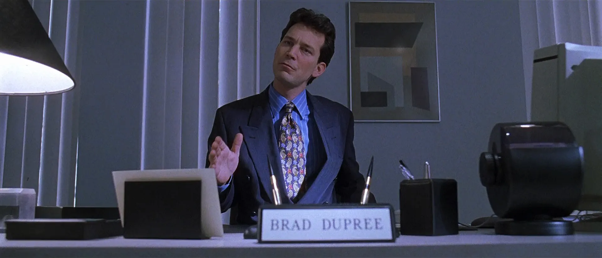 Cast: Kevin Spacey as Lester Burnham, Annette Bening as Carolyn Burnham, Thora Birch as Jane Burnham, Wes Bentley as Ricky Fitts, Mena Suvari as Angela Hayes, Chris Cooper as Colonel Frank Fitts, Allison Janney as Barbara Fitts, Peter Gallagher as Buddy Kane, Scott Bakula as Jim Olmeyer, Sam Robards as Jim Berkley, Barry Del Sherman as Brad Dupree, John Cho as Sale House Man #1, Hal Fort Atkinson as Sale House Man #2, Kent Faulcon as Sale House Man #3, Ara Celi as Sale House Woman #1, Sue Casey as Sale House Woman #2, Brenda Wehle as Sale House Woman #3, Lisa Cloud as Sale House Woman #4, Amber Smith as Christy Kane, Joel McCrary as Catering Boss, Marissa Jaret Winokur as Janine, Dennis Anderson as Mr. Smiley's Manager, Matthew Kimbrough as Firing Range Attendant, Erin Cathryn Strubbe as Young Jane, Alison Faulk as Spartanette #1, Krista Goodsitt as Spartanette #2, Lily Houtkin as Spartanette #3, Carolina Lancaster as Spartanette #4, Mona Leah as Spartanette #5, Chekesha Van Putten as Spartanette #6, Emily Zachary as Spartanette #7, Nancy Anderson as Spartanette #8, Reshma Gajjar as Spartanette #9, Stephanie Rizzo as Spartanette #10, Heather Joy Sher as Playground Girl #1, Chelsea Hertford as Playground Girl #2, Elaine Corral Kendall as Newscaster (uncredited), David C. Fisher as Wedding Guest (uncredited), Tom Miller as Advertising Executive (uncredited), Bruce Cohen as Bartender (uncredited)